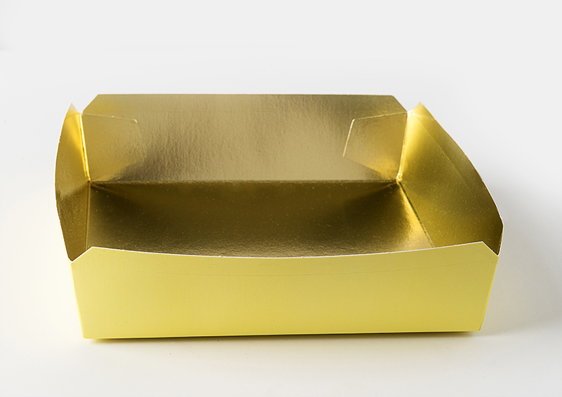 Enhance the look of your food with these attractive bakeable gold foil lined trays. The elegant gold foil allows you to bake in the tray for added convenience and can be used for reheating in a conventional oven. They can be over-wrapped, bagged, boxed or placed in a clamshell. These nested trays make it easy for stacking and storing.
